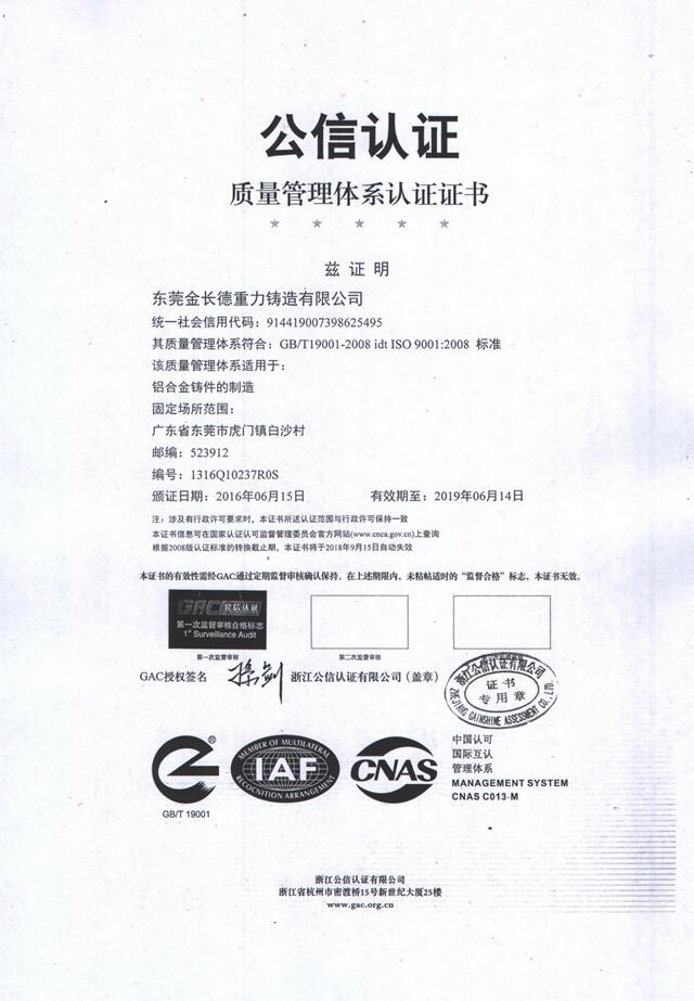 東莞金長德重力鑄造有限公司始建于1990年,是一家專業(yè)從事鋁合金重力鑄造、低壓鑄造、砂型鑄造的企業(yè)。位于廣東省東莞市虎門鎮(zhèn)白沙一村,已經(jīng)有三十多年的歷史,專業(yè)從事于鋁合金鑄件的生產(chǎn)和加工。我司除了自己設(shè)計制作各種鑄造類模具外,鑄造和機械加工為一體是我公司的另外一個生產(chǎn)特色。我們可以根據(jù)客戶的要求,來樣,來圖進行模具的設(shè)計和產(chǎn)品的生產(chǎn),做出各種毛胚件和成品件。還有自動射芯機,拋丸機,噴砂機,熱處理機器多臺,CNC數(shù)控加工中心,銑床等設(shè)備。 我司的產(chǎn)品領(lǐng)域包括了新能源電機、機器人零件、汽摩配件,火車零件,機械零件,馬達風機,空壓機系列,印刷機械零件,木工和醫(yī)療器械零件等類型,產(chǎn)品出口到意大利,法國,美國,英國,以色列,日本,臺灣等國家和地區(qū),深受國內(nèi)外客戶的認可和好評。